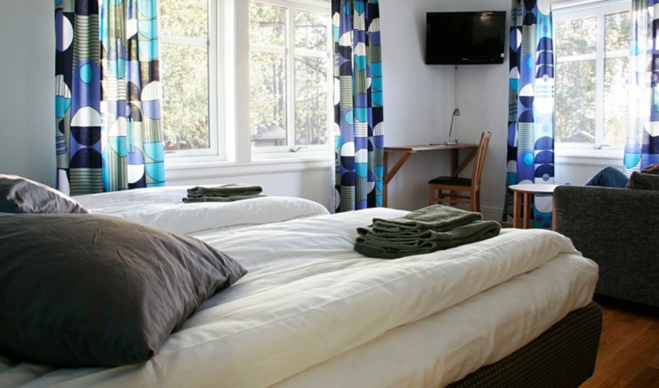 Each of the large en-suite bedrooms has been decorated to reflect Sweden’s seasons, incorporating charming Nordic touches. You’ll be tempted to spend most of your time in the main building, however, which houses a cozy lounge, large open fireplace, gourmet restaurant and a bar. It’s the sort of place you could hibernate in all winter.