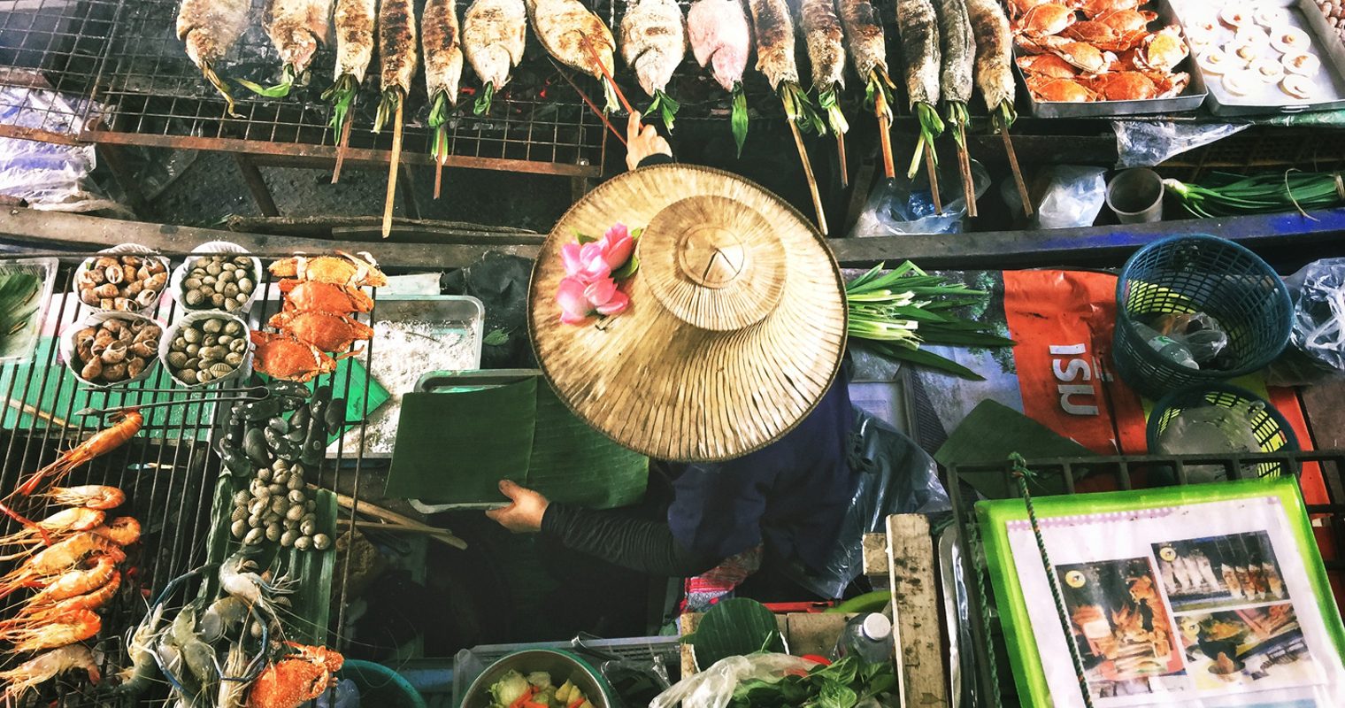The following morning, you’ll explore Bangkok’s winding waterways – and the markets which line them. Heading west of the city, you’ll climb aboard a small wooden paddle boat at Tha Kha Floating Market, drifting between coconut palms and bartering for ingredients. From here, you’ll continue your shopping spree at the railway markets of Talad Rom Hoob and the canals of Amphawa; watching as traders ply their wares along train tracks and mooring your riverboat at traditional wooden houses that serve freshly grilled seafood.