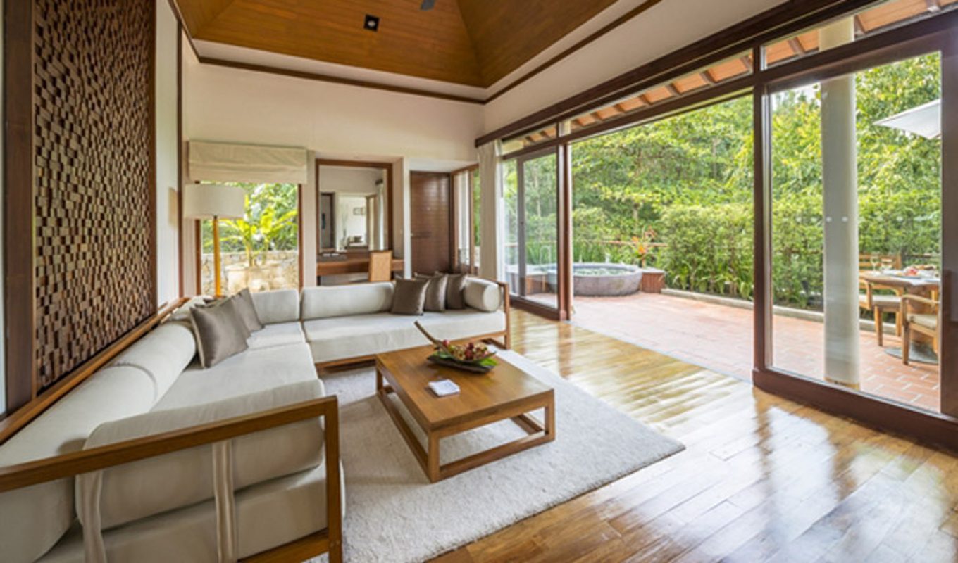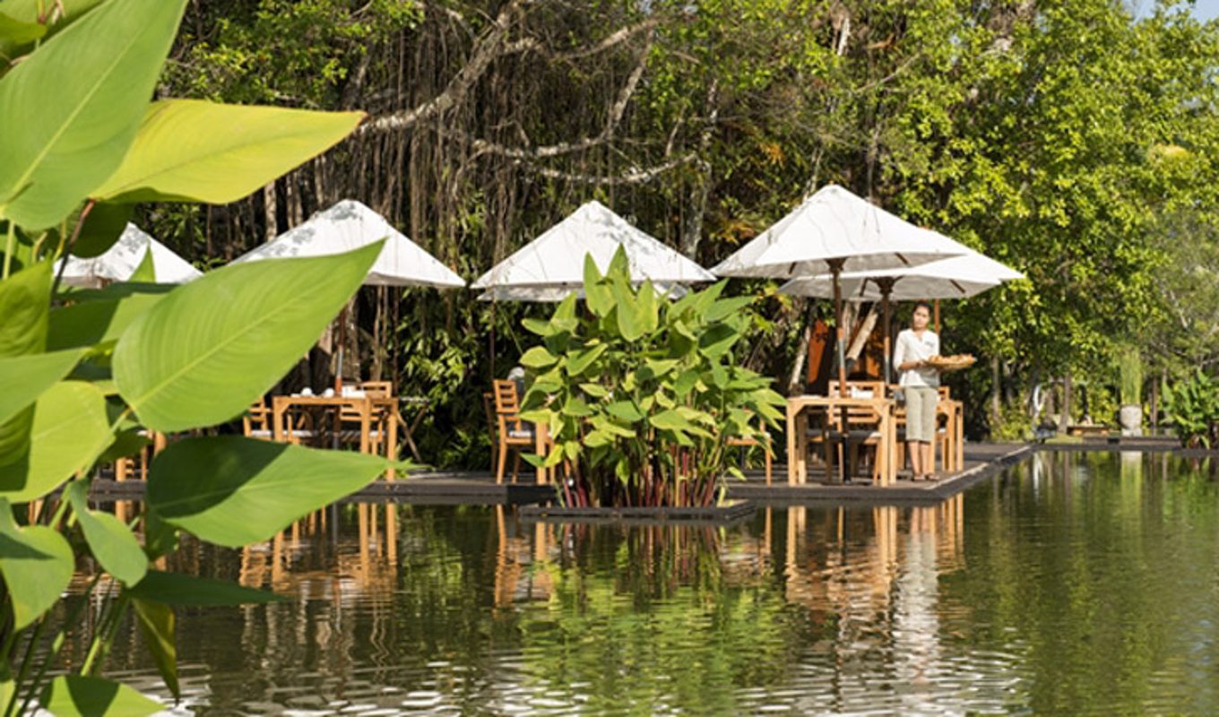 Spacious, stylish and serene are the words that probably best describe the rooms at Sarojin. With king-sized beds, oriental-style low sofas and wooden ceilings, warm lighting, soft colors and natural surroundings you will be loath to leave your private space. Even the bathrooms, with their special couple’s baths and rainfall showers, are set in a garden setting. As well as all this, each room also comes with a full minibar, complimentary Wifi, and all the entertainment you could possibly want (think TVs, CD and DVD players), not that you’ll need it with all this nature surrounding you.