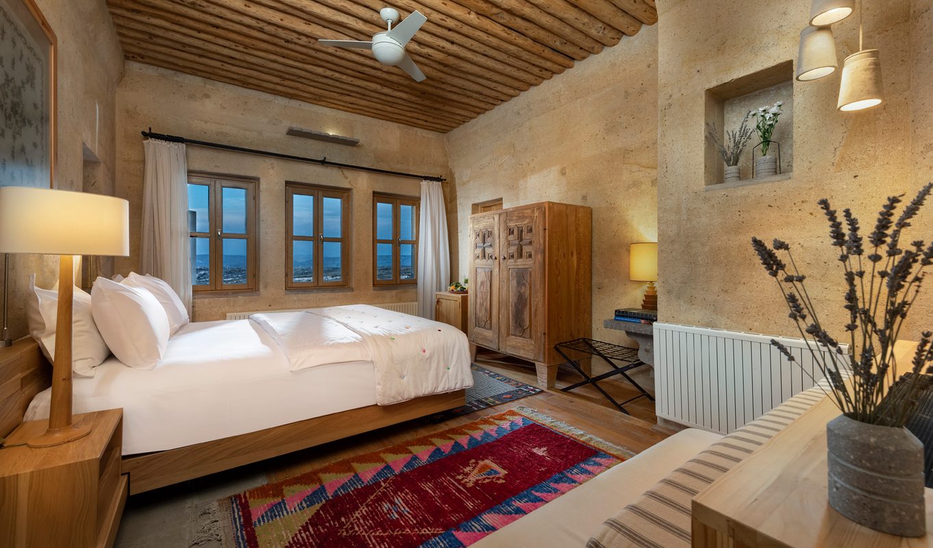 Nestled high above the spiritual, old village of Uçhisar, Argos sits just a 30-minute drive from Nevşehir Cappadocia airport or, alternatively, an hour from Kayseri. Discover the Cappadocia plateau’s millennia-old rich heritage and enter a dream by visiting the Uçhisar Castle at the summit and enjoying breathtaking, mystical views over the region. You’ll be enthralled by nature at its purest as you gaze out on the mighty Mount Erciyes and the beautiful Pigeon Valley, scattered with its distinctive ‘fairy chimneys’.