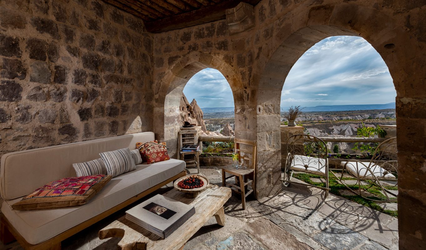 The unique and enchanting Argos, with its 51 rooms and suites, lies in the heart of cultural Cappadocia in central Turkey. Diligently restored from an ancient monastery, a series of mansions are tied together by a series of subway passageways with rooms revealing themselves in the style of traditional, yet luxurious cave dwellings. Sitting modestly atop tranquil Turkish foothills and framed by sunsoaked gardens, Argos reveals panoramic views and transports you back to the magic of Cappadocia’s past in utmost luxury.