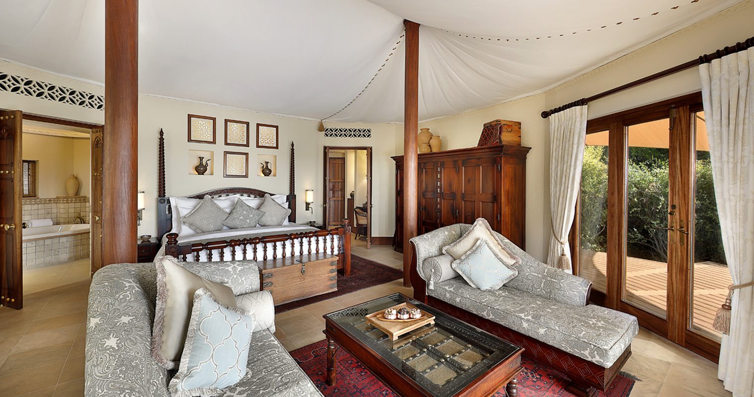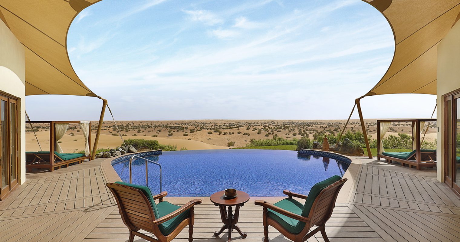 Desert luxury at its finest, check in to one of the 42 suites to find private pools surrounded by wooden decks with panoramic views of the mountains and sand dunes, bathrooms with walk-in showers and king size beds to fall into. The Arabian camp-like resort boasts lavishly decorated guestrooms with authentic handcrafted Arabian furnishings and swathes of desert hues. Each room also has thoughtful touches, like binoculars and an easel with art materials just in case your creative instincts are inspired by the landscapes.