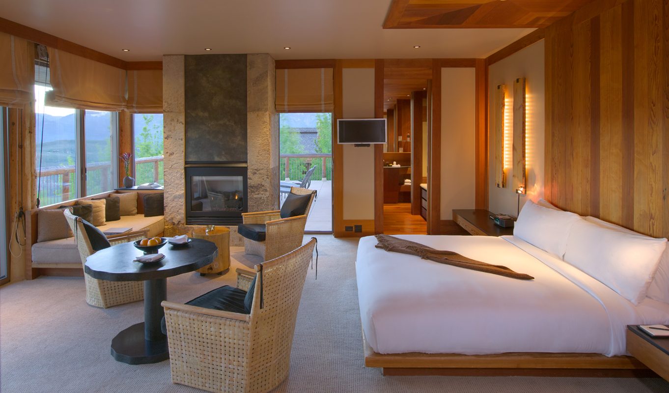 Perched atop East Gros Ventre Butte in northwest Wyoming, Amangani is surrounded by snow-capped peaks offering a host of skiing and snowboarding activities for all ages and abilities. Not only is the resort close to the slopes, it is also a mere 10-minute drive from the quaint town of Jackson Hole. Look out across the raw valley of ‘The Hole’ where many a wild animal leaves a labyrinthine trail as they wander up into the spectacular snowy surrounding of the Rockies’ youngest and most riveting range.