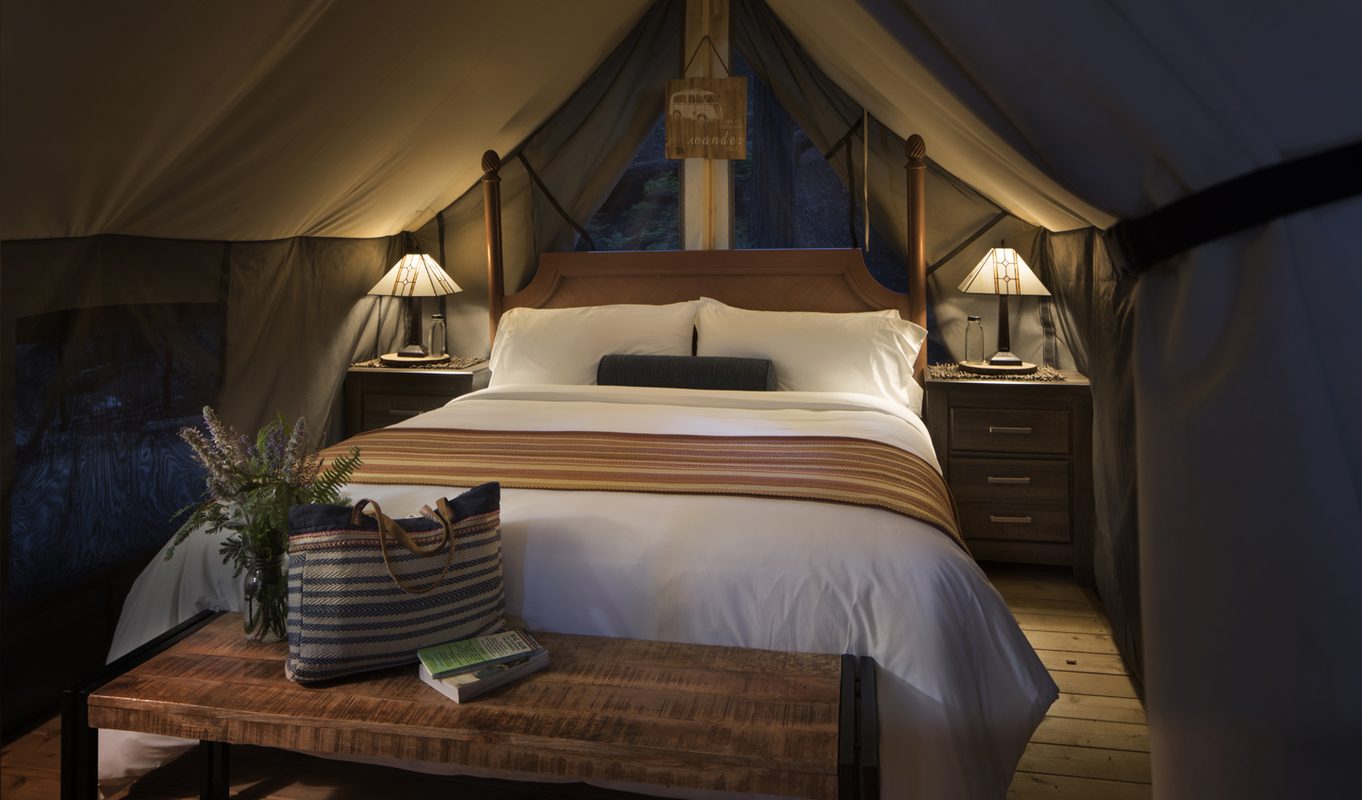 High ceilings and spacious open rooms make for a luxurious stay in any of the 59 guestrooms, where, complete with elegant wooden furnishings and breathtaking views of the ocean and mountains from private balconies, you’ll get a feel for rustic-luxury. But for a real dose of the outdoors, burrow away in one of 15 safari-style canvas tents and glamp in style. Handheld lanterns and gourmet picnic baskets are just a few of the added extras you’ll be treated to – but turndown in the outdoors has always been our favorite part of the day. Piping hot cocoa and a s’mores kit? It’s the perfect excuse to put the fire pit to use.