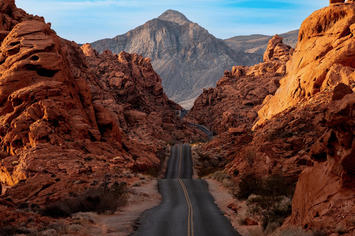 Your final show-stopping National Park is Zion, where you’ll spend a day hiking, canyoneering and rappelling through slot canyons to your heart’s content. Back at Cliffrose Lodge that evening, it’s just you, the National Park – and a roaming buffalo herd. Tomorrow, you’ll swap the original American dream for the land of excess as you drive across the state border into Nevada and down one of the most famous streets in the world – the Las Vegas strip. We haven’t brought you here for the casinos though, but for an off-road driving adventure through the red-hilled Valley of Fire.