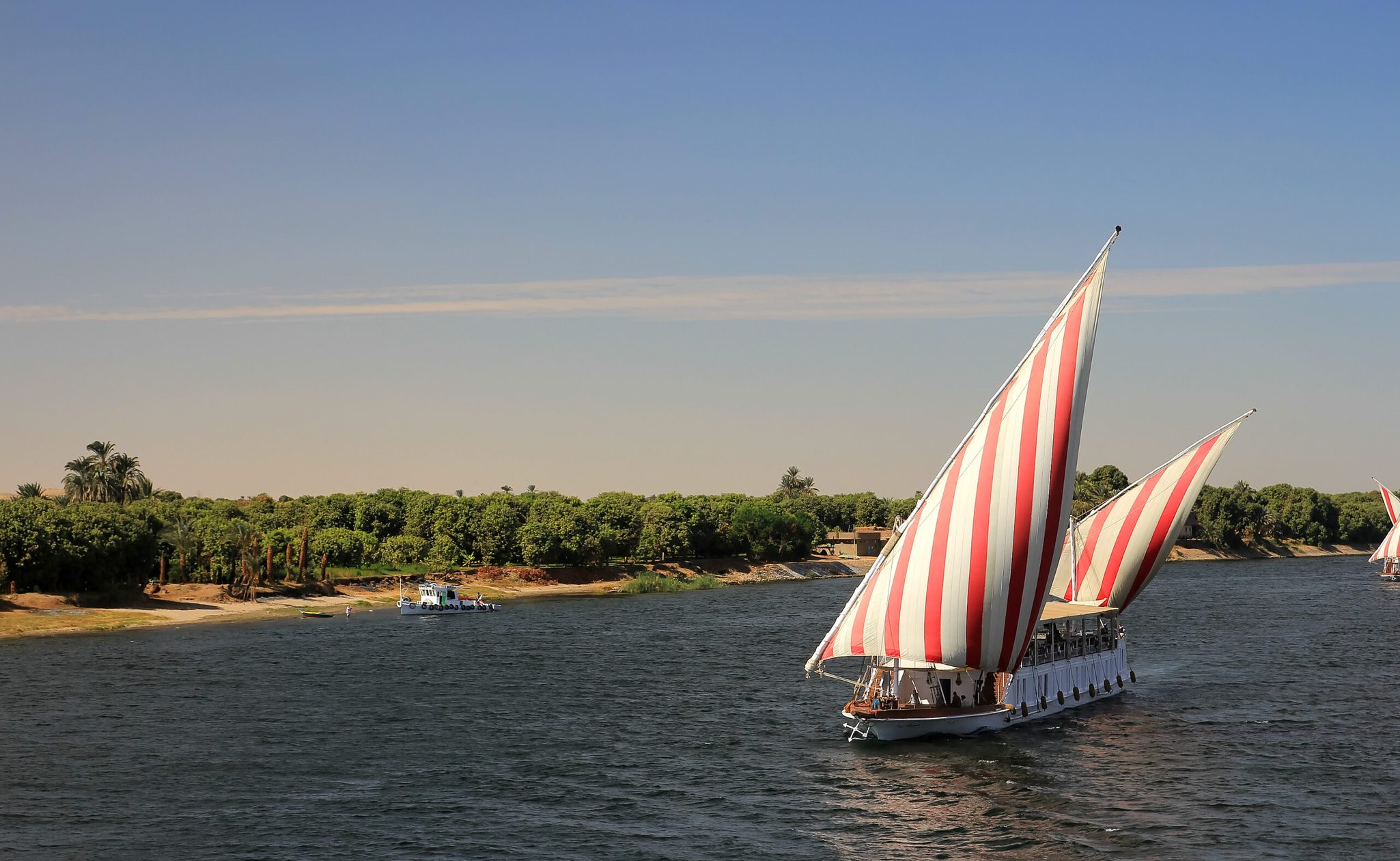 As if conjured from my imaginings, a writing opportunity emerged. My assignment was to sail up the Nile on a dahabiya, a glamorous wooden boat, affixed with bright white-and-red-striped sails. I would board just south of Luxor and four days later, arrive in Aswan, where my son would meet me at the Old Cataract Hotel, which I booked for four nights.
