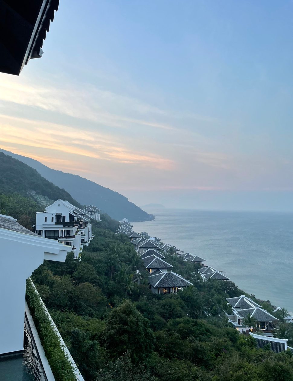 After a short drive in our own air-conditioned minibus along the winding Son Tra Peninsula, we pulled up at the extremely glamorous InterContinental Da Nang – our home for the next few nights. Greeted with cups of cold jasmine tea and damp rolled towels, we took in the breathtaking views of the secluded bay below from the art-deco front desk terrace perched high up in the hillside.
