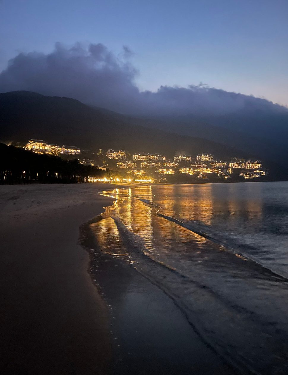 After his departure, we spent the evening settling into our room (and exploring the resort more thoroughly, naturally). We took a dip in the Long Bar’s outdoor rooftop pool, overlooking palm trees and ocean waves, and I noticed a few stray dragonflies zip through the air. We walked along the beach at sunset, watching as night descended and tiny white crabs came out to play. Brushing the sand from our feet, we stepped into the unique funicular designed to resemble a Vietnamese boat, transporting guests to and from the hotel’s four levels. From the lowest level “Sea” to the highest (and aptly named) “Heaven” with its Club Lounge (I’d recommend the afternoon tea with the hibiscus brew), spacious terrace suites (including our own), and Citron restaurant (hands down, the best breakfast buffet I’ve ever seen). It even had its own banh mi stall. Enough said.