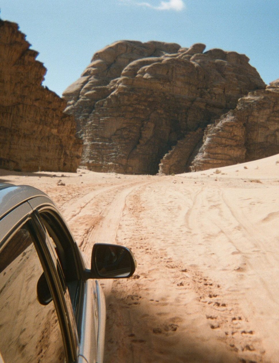 We set off, climbing into the pickup and powering across the frozen desert. Some miles away they’re shooting the second part of Dune. The light is both hard and diffuse, and we pass a few camel trains as they make their way into the deeper desert.
