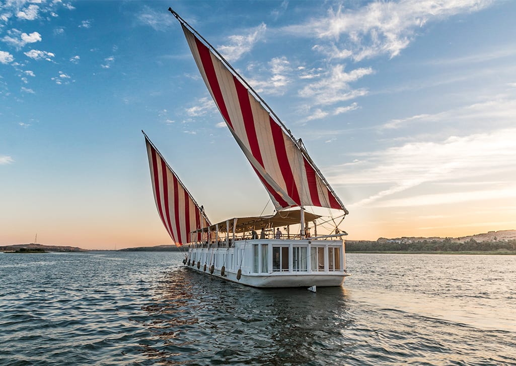 Before kicking off your Dahabiya journey, you’ll spend time in historic Luxor, located on the east bank of the Nile. This is the site of the ancient city of Thebes – the capital of the Pharaohs between the 16th – 11th centuries B.C.E. The city sprawls across two gigantic ancient monuments; Luxor and Karnak temples. On the river’s west can be found the Valley of the Kings and the Valley of the Queens, the legendary site of Egypt’s ancient tombs.