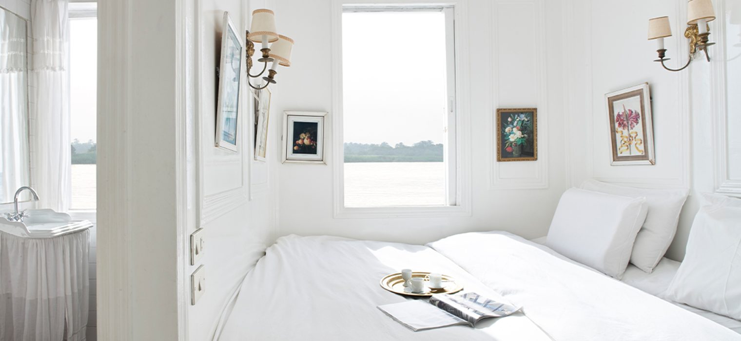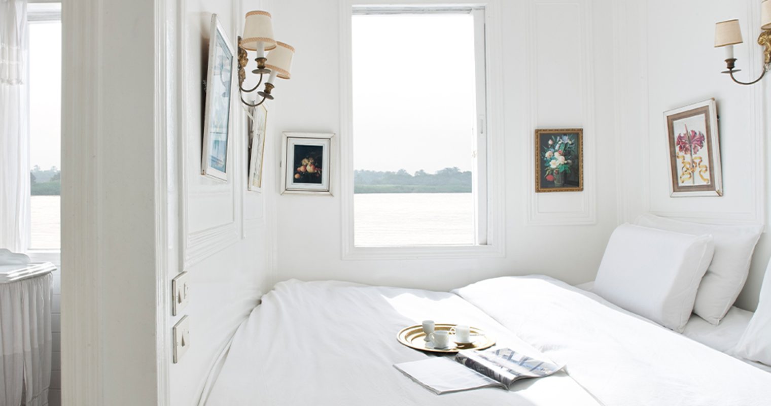 After all, unlike large cruise ships and even steamboats (bulky, public, rigid), the Dahabiya can pull up to almost any river bank. “You can visit the weekly market, stop by lesser-known sites,” explains Eric. “You can even just stop for a walk in the desert.” And this is an elegant vessel; draped in its customary red and white sails, with comfortable, light-filled and decorous cabins. Their crews can number as many as 15.
