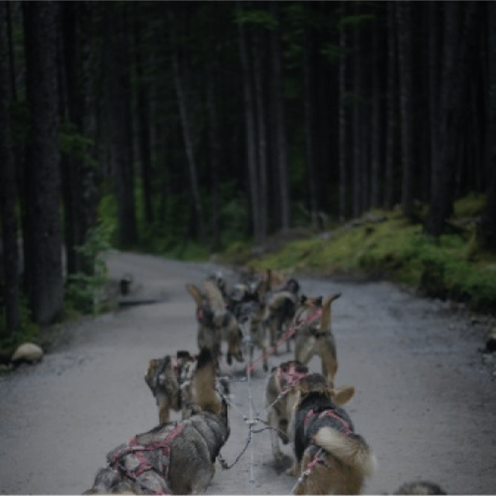 Dash through the forest on a dryland husky mushing adventure along secluded mountain trails. Towering trees, whistles, and lots of fun.